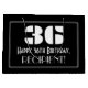 This vintage appearance Roaring Twenties look inspired birthday-themed giftbag design features a large art deco look inspired number "36", the message "Happy 36th Birthday,", a personalized name, and a border pattern consisting of thin lines. The background is coloured black. A birthday themed gift bag like this could be used to wrap a gift or present being given to celebrate somebody’s 36th birthday. [~Z0000495]