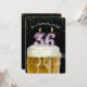 Number 36 birthday candles in mug of beer with colourful confetti on black for 36th birthday party invite.