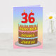 This fun and upbeat birthday-themed greeting card design features a cartoon-style depiction of a three-tier birthday cake having number-shaped candles on top showing the age “36“, along with the message “HAPPY 36TH BIRTHDAY,”, and an editable recipient name. The background of the front features a multicolored pastel rainbow spectrum inspired gradient pattern. The inside has an editable birthday greeting message, or could perhaps be cleared and left blank if a message is to be written by hand instead. A joyful, editable birthday greeting card like this might be a fun way to deliver birthday greetings to somebody who is celebrating their thirty-sixth birthday. [~Z0000625]