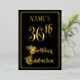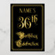 The front of this ornate and fancy foil thirty-sixth birthday party invitation design features the message “36th Birthday Celebration” in luxurious script-style text. It also features a personalized name. The background of the front is coloured black by default (although it can be customized to a different colour). The back features personalized details about the event, such as the date, time, location, and any other information that may be relevant. Elegant, luxurious, editable invitations like these might be used to invite guests to a birthday celebration being held to celebrate somebody’s 36th birthday. [~Z0000589]