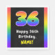 This exciting and upbeat birthday paper napkin design features a large number “36“ with a vibrant multicolored rainbow spectrum inspired gradient pattern, along with the message “Happy 36th Birthday,”, and an editable recipient name. Vibrant paper napkins like these might be used when hosting a party for somebody in celebration of their 36th birthday. [~Z0000629]