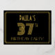 The front of this vintage-appearance thirty-seventh birthday party foil invitation features an editable name, a large art deco look inspired number “37TH”, the message “BIRTHDAY PARTY!”, and a border pattern consisting of lines. There is a black-coloured background on the front by default, but it can be customized to a different colour if desired. The back features personalized details about the event, such as the date, time, location, and any other information that may be relevant. Elegant, luxurious, customized invitations like these might be used to invite guests to a birthday celebration/party being held to honour somebody’s 37th birthday. [~Z0000590]