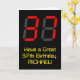 The front of this fun and nerdy birthday greeting card design features a large number "37" having a red seven segment digital display inspired appearance, along with the message "Have a Great 37th Birthday," and a customizable name, on a black coloured background. The inside features a custom birthday greeting message, or could perhaps be cleared and left blank if a message is to be written by hand instead. A customizable birthday card like this might be a fun way to send birthday wishes to somebody who is celebrating their thirty seventh birthday. [~Z0000386]