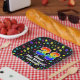 This cheerful and fun birthday themed paper plate design features a large number “38” having a rainbow spectrum gradient inspired pattern. It also features the message “Happy 38th Birthday,”, and a customizable name. The background features an exciting and colourful pattern having many star shapes with different sizes and colours. Joyful birthday themed paper plates like this might be used at a party for somebody who is celebrating their 38th birthday. [~Z0000582]