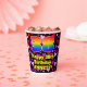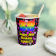 This happy and fun birthday themed paper cup design features a large number “38” having a rainbow spectrum gradient inspired pattern. It also features the message “Happy 38th Birthday,”, and a custom name. The background features a pattern of heart shapes with colours like purple, red, and pink. Fun, joyful paper cups like this might be fun to have at a birthday party/celebration being held in celebration of somebody’s 38th birthday. [~Z0000548]