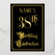 The front of this elegant and opulent foil thirty-eighth birthday party/celebration invitation design features the message “38th Birthday Celebration” in fancy script-style text. It also has a custom name. The background of the front is coloured black by default (although it can be customized to a different colour). The back features personalized details about the event, such as the date, time, location, and any other information that may be relevant. Luxurious, ornate, editable invitations like these might be used to invite guests to a birthday party/celebration being held in celebration of somebody’s thirty eighth birthday. [~Z0000589]