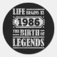 39 Year Old 1986 Birth Of Legend 39th Birthday Classic Round Sticker