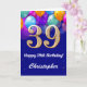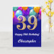 39th Birthday Navy Blue and Gold Colourful Balloons Birthday Card. For further customization, please click the "Customize it" button and use our design tool to modify this template.