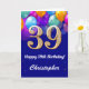 39th Birthday Navy Blue and Gold Colourful Balloon Card