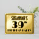 The front of this 1920s/1930s style inspired and elegant thirty-ninth birthday celebration/party foil invitation features a customizable name, a large art deco look inspired number “39th”, the message “BIRTHDAY PARTY”, and a border pattern consisting of lines. The back features personalized details about the event, such as the date, time, location/venue, and any other information that may be important. Stylish, luxurious, editable invitations like these might be used to invite guests to a birthday gathering/party being held to honour somebody’s 39th birthday. [~Z0000592]