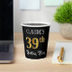 This ornate and luxurious birthday paper cup design features an editable name and the message “39th Birthday Party”. The large number “39th” has a faux/imitation gold-inspired colouring pattern, and the words “Birthday Party” are in opulent script-style text. The background is coloured black by default (although it can be customized). Elegant, opulent paper cups like this might be useful to have at a birthday celebration/party being held to honour somebody’s thirty ninth birthday. [~Z0000567]