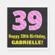 39th Birthday: Pink Stripes and Hearts "39" + Name Napkin