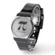 Add a touch of mathematical constancy and wit to your wrist with a watch that features an oversized Pi symbol with the first few digits of this mathematical constant, rendered in 60s OCR-style punch card font and set on a stainless steel background.
