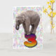 Un bébé éléphant est posé sur un numéro, tandis qu'à l'intérieur des éléphants sont du skate ! Une carte d'anniversaire d'éléphant pour un enfant.