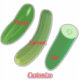 Funny graphic of various cucumbers, one whole and uncut, one curved and one cut on one end to customize with your own greeting, name, message, etc
