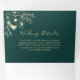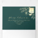 Simple, élégant, moderne, vert émeraude 3 en 1 invitation tri-pliée mariage, avec des fleurs or art déco et photo du couple. Ajoutez votre photo, les détails du mariage et rsvp.