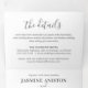 Elegant all in one minimalist script wedding tri-fold invitation featuring a white background, photos of the bride and groom, your wedding details, a wedding invite, and an rsvp food entree postcard for your guests to cut off and send back.