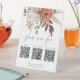 3 in One Qr Codes Bar Menu Program Terracotta Florals Wedding with an elegant set script for Please Scan For and easy to personalise the rest of the text to your requirements and replace the sample photo with your own. Handy to display for your guests to scan. Simply change the sample URLs in the templates with your own URLs for your Menu, Bar Menu and Program and your QR codes will be automatically generated to update the sample codes in the design.