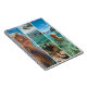 Create your own family triptych photo collage on a blank notebook. Add three images on the design that look great on a thin vertical shape. Souvenir photos from trips to places like the Grand Canyon or tall trees at Lake Tahoe will look great in a long vertical format. You can even use the same photo more than once, just adjust the placement so that it focuses on a different area. Add a name or monogram text to create a personalized gift.