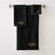 Élégant monogramme personnalisé 3 script original or noir serviette de bain ensemble. Rafraîchissez votre décor de salle de bain avec un style typographique minimaliste.