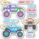 3 Monster Trucks With Flames, Names & Text Lines