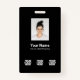 Easily personalize this Custom Employee Name Badge with Photo, Scan Bar Code and 3 Multiple business logos. You can upload 3 different company logos, perfect for partnerships and sponsors. A simple business design in total black and white colours fully customizable in front and back sizes, sans-serif basic and modern fonts and a professional and clear look. Avaiable with lanyard, metal clip or with retractable. No minimum order.