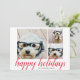 3 Photo Christmas Script Red Damask Happy Holiday Card