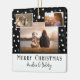 3 Photo Collage Modern Black White Christmas Ceramic Ornament