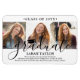 Share the joy of a high school or college graduation with custom black and white flexible magnetic 3 photo collage announcements. The pictures and wording on this template are simple to personalize, and the colours are easy to change with the Zazzle design tool. Include any details of your choice, such as party invitation info, special honours, degree title, favourite inspirational quote, graduate's contact info, or plans for the future. The magnetic backing makes them easy for family and friends to display. The modern design features a mortar board cap, elegant script calligraphy, traditional typography, and three photos of your choice, such as senior pictures or images from the commencement ceremony. These chic graduation magnets are a unique and stylish way to announce a special day celebration. Congratulations to the graduate!