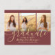3 Photo Collage Script Burgundy & Gold Graduation Announcement Postcard