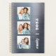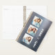 Customisez facilement ce planificateur moderne en remplaçant les trois exemples d'images par vos photos carrés préférées. Ajoutez vos initiales de nom ou de monogramme et l'année dans la typographie blanche collante sur un arrière - plan en métal brossé en argent.