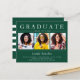 3 Photo Green White Stripes Graduation Invitations