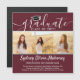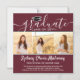 Share the joy of a high school or college graduation with custom 3 photo collage maroon and white square magnetic announcements. The pictures and wording on this template are simple to personalize, and the colours are easy to change with the Zazzle design tool. Include any details of your choice, such as party invitation info, special honours, degree title, favourite inspirational quote, graduate's contact info, or plans for the future. The magnetic backing makes them easy for family and friends to display. The modern burgundy red design features a mortar board cap, elegant script calligraphy, traditional typography, and three photos of your choice, such as senior pictures or images from the commencement ceremony. This chic magnetic graduation card is a stylish and unique way to announce a special day celebration. Congratulations to the graduate!