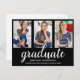 Modern 3 Photo Graduation Party Invitation Postcard - Black, White Script - Blank Back