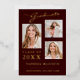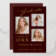 Beautifully elegant 3 photo graduation announcement cards. Featuring modern text with calligraphy script in your choice of gold, silver or rose foil. The design is complimented with a stylish burgundy background on the front with a dusty rose colour on the back. The back of the card offers a personalized announcement text space for that special graduate. To see more items like this, visit my store here at "www.Zazzle.com/LakeViewCardCo". Thanks