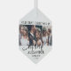 Celebrate a joyful 1st holiday as a married couple with a custom 3 photo collage "Our First Christmas as Mr. & Mrs." hexagon-shaped glass ornament. All wording and pictures on this template are simple to personalize. (IMAGE PLACEMENT TIP: An easy way to center a photo exactly how you want is to crop it before uploading to the Zazzle website.) The black and white design features modern handwritten style script calligraphy, elegant typography names & year, and three pictures of your choice. This unique wedding keepsake adds a stylish touch to the newlyweds' Xmas home decorations.