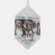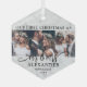 Celebrate a joyful 1st holiday as a married couple with a custom 3 photo collage "Our First Christmas as Mr. & Mrs." hexagon-shaped glass ornament. All wording and pictures on this template are simple to personalize. (IMAGE PLACEMENT TIP: An easy way to centre a photo exactly how you want is to crop it before uploading to the Zazzle website.) The black and white design features a stylish faux marble border, handwritten style script calligraphy, elegant typography names & year, and three pictures of your choice. This unique wedding keepsake adds a modern touch to the newlyweds' Xmas home decorations.