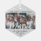 Celebrate a joyful 1st holiday as Mr. & Mrs. with a custom 3 photo collage "Our First Christmas Married" glass hexagon ornament. All wording and pictures on this template are simple to personalize. If preferred, the script typography can read "Together" or "Engaged." (IMAGE DESIGN TIP: An easy way to centre a photo exactly how you want is crop it before uploading to the Zazzle website.) Design features an elegant black and white faux marble background, handwritten style script calligraphy, typewriter typography names & year, and three pictures of your choice. This unique & modern keepsake adds a stylish touch to Xmas home decorations. Makes a cute wedding gift idea for the bride and groom.