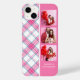 3 Photo Preppy Pink Plaid Modern Girly Custom Name Case-Mate iPhone Case