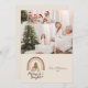 Send warm wishes in cozy retro style with this festive two-photo holiday design. Featuring soft earth tones, a hand-drawn rainbow with Christmas trees, and space for your family name and year, it’s the perfect way to spread some vintage-inspired cheer this season.
