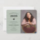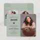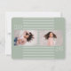 This graduation invitation offers a stylish design featuring 3 photos on a trendy sage green striped background.