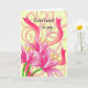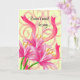 3 Pink Lilies With Ribbons and Swirls Card
