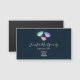 Magnetic business cards with a pretty design. 3 watercolor butterflies, painted pink, purple and green. Dark blue watercolor background.