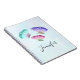 A personalized notebook with a pretty design. 3 watercolor butterflies, painted pink, purple and green. A light blue watercolor background with hints of light pink.
