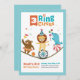 Adorable 3-ring circus and circus animal including a lion, dancing bear and seal. Invite friends and family to your toddler's 3rd birthday with these stylish, fun, and playful circus themed birthday party invitations. Light blue with circus theme illustration on back.