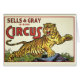 Vintage poster from 1930 for Sells & Grey 3 ring Circus. A strong graphic of a fierce tiger in the centre.