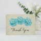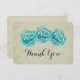 Un carte de remerciements, avec un simple trio de roses turquoises peint d'aquarelles. L'Arrière - plan est un motif de damas tanné.