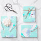 3-SET Personalized Ice Skating Patterns Blue Gift Wrapping Paper Sheet