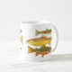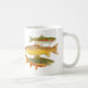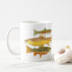 Trois truites les plus communes sur une tasse. Aquarelles de l'arc-en-ciel, du ruisseau et de la truite brune par Thom Glace