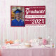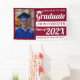 Is your child getting ready to graduate from school soon? Celebrate your child's accomplishments with this 3' x 5' dark red and white "Congrats Graduate" banner with photo. This graduation sign is fully customizable from the text colours to the place holder photo area for your child's photograph. Personalize this banner even farther with your child's school colours. All banners are helmed and welded for a clean finished edge. By default this banner is set as an "indoor" banner. To use this banner outdoors, choose "outdoor with grommets" before checkout for easy installation on any surface.